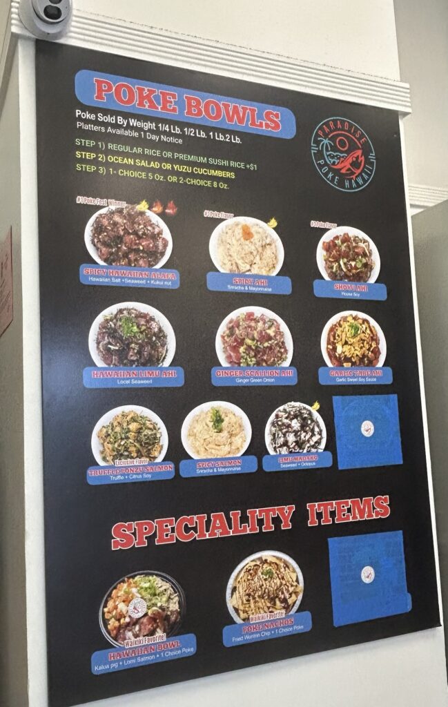 初めてこのパラダイスポケでポケ丼を買ったのが確か2年くらい前で、その日は金曜日だったので、ヒルトンハワイアンビレッジから上がる花火を見ながらToGoにして野外で食べたことを覚えています。